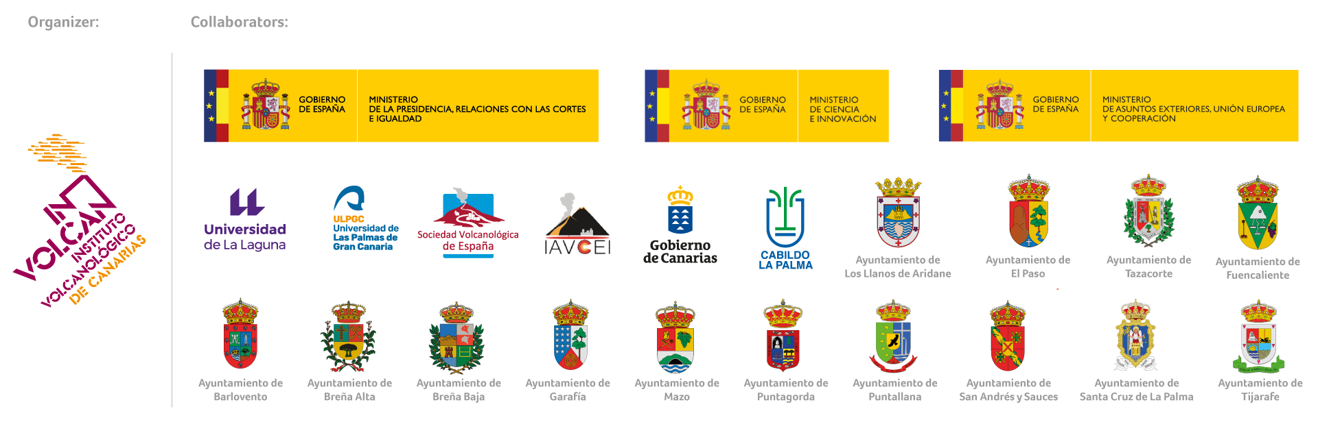 La Palma International Workshop on Reducing Volcanic Risk at Island Settings has the collaboration of the two public universities of the Canary Islands (ULL and ULPGC), Spanish Volcanological Society (SVE), International Association of Volcanology and Chemistry of the Earth’s Interior (IAVCEI), several departments of the Government of Spain and the Autonomous Government of the Canary Islands, Cabildo Insular de La Palma and the 14 municipalities of the Island of La Palma